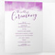 A six-page modern art mauve purple wedding renewal program. Edit this wedding program with your own wedding renewal names, dates, introduction, ceremony wording, wedding party attendants, two photos of your first elopement or restricted wedding, and yours thanks. Original abstract washed watercolor art and design by www.mylittleedenweddings.com (Placeholder photos from Vitor Pinto Unsplash.com)