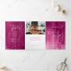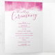 A six-page modern art red pink wedding renewal program. Edit this wedding program with your own wedding renewal names, dates, introduction, ceremony wording, wedding party attendants, two photos of your first elopement or restricted wedding, and yours thanks. Original abstract washed watercolor art and design by www.mylittleedenweddings.com (Placeholder photos from Vitor Pinto Unsplash.com)
