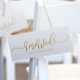 Wedding Hanging Reserved Sign (Gold): Hang these wedding signs from chairs, or simply place flat on a chair seat. This wedding reserved sign features modern bouncy calligraphy / typography in flat gold. Change the colour of the design by choosing a new fill colour!