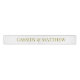 This custom ribbon can be personalized with the bride and groom's names. This ribbon has gold text on white.