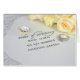 Wedding white roses and rings on contemporary invitation for newlyweds congratulations.