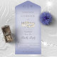 This simple yet elegant design has a modern look, with two interlocked gold wedding rings on a soft white blur overlay on a periwinkle background. Personalised All-In-One invitations are a unique combination of both a beautifully printed custom invitation with an easy to tear off perforated RSVP postcard. And they are so easy to use! You simply fold, then seal the back flap with the three included clear stickers, and mail. And when your guests receive your custom invite, they just tear the perforated RSVP Card off and drop it back in the mail to you!