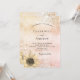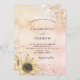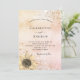 A modern, elegant and wedding invitation. A rose gold and blush pink faux metallic looking background decorated with faux gold and silver glitter dust and a rustic sunflower. Personalise and add your names and party details. Black coloured letters.