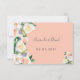 Back: Coral coloured background. Florals and templates for your names and the wedding date. This card is also available in our store with a white background on the back.