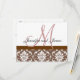 Brown Damask RSVP Cards with Monogram. Layout Design by Elke Clarke©2010. Graphics licensedCustomize this design with your specific wedding information and choose the colour and type of stationery paper. You can also change the background colour and that of the text. Just use the customise button. This card comes with envelopes and fits into the 5 x 7 inch invitation which Zazzle carries.