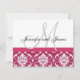 Wedding RSVP Card Hot Pink Damask Monogram & Names