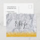 Wedding Rsvp card White Gold Glitter Marble Script