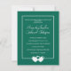 This wedding response RSVP card features the wedding invitation on one side and the RSVP card on the other. It can be utilised as an alternative to having wedding invitations and separate RSVP cards for your special day. Space also allows for the return of the RSVP to be sent as a postcard. There is also a QR code feature that you can use for your wedding registry, wedding website, and more. Joined hearts design. Colour shown is emerald green. Use the template to personalise.
