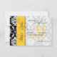 RSVP Cards for Wedding Invitations with Damask and Yellow Monogram and Script. Horizontal style.com and WhiteWhimsicalWeddings.blogspot.com. Customise with your monogram, names and RSVP information. Also, choose from a variety of fonts and beautiful papers to make your wedding invitation reply cards FABULOUS! Design by Elke Clarke ©2011. Graphics licensed for commercial use