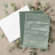 Wedding RSVP cards in a minimalist style. Elegant green tones combined with minimalist design and personalized details create a sophisticated yet festive atmosphere.
