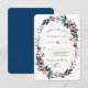 Elegant, delicate dusty blue, misty rose watercolour flowers wreath on a white background, making room for your wedding day details; on the back a navy blue background. A great choice for all seasons weddings, especially for fall, or winter weddings. Use Customise tool to add your info and change fonts colours. For matching items, please, visit my Dusty Blue Misty Rose Flowers Collection.