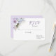 Soft watercolor lavender and blue floral bouquet on white for wedding RSVP.