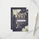 Wedding RSVP Reply Card Templates - Elegant White Hydrangea Flowers and String Lights on Vintage Navy Blue Floral Linen Background.