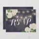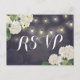Wedding RSVP Hydrangea Flowers String Lights Blue Postcard