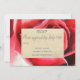A modern, rustic and stylish wedding RSVP featuring a macro red crimson rose flower from an original watercolour painting by artist Sacha Grossel. The customisable text is in elegant script against a handmade paper theme background. Original and unique arty wedding invitation RSVP. A simple, elegant design for your special day. Red rose themed wedding or modern arty rustic wedding.