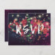 Wedding RSVP Reply Postcard Templates - Burgundy Marsala Red Watercolor Floral with String Lights and Elegant Script on Purple Sparkle Bokeh Lights Background.