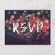 Wedding RSVP Reply Floral String Light Gold Script Invitation Postcard
