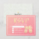 Wedding RSVP Reply Gold Pineapple Couple Pink Rose Card