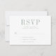 Modern Wedding Sage Green Wedding RSVP Card. Stylish design features sage green text on white. Personalise with your RSVP response date. Text and background colours front and back are fully customisable. Back shown in solid sage. We invite you to visit our Zazzle store, GJ Design Co, to view matching products and more.