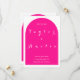 This is a modern, simple, boho arch, Save the Date, Wedding Card/ Invitation. It is in trending hot pink with elegant typography /script. On the front it says, "Save the Date", with space for your names, the wedding date, location and space for more information. On the back, it says the "Save the Date", with space for your initials, and the wedding date. This chic design is perfect to let your family and friends know about your wedding date, ahead of sending them their wedding invitation. To personalise, simply type your names, initials, and wedding details, into the personalise this text box. Here you can also make changes to the rest of the text, if you want to. To change the colour or font, check out the design editing tool. If you need help with personalisation, matching products, or for a custom design contact me via zazzle chat.