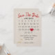 "Save the date" calendar with red heart on beach sand background for upcoming wedding announcement