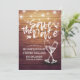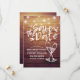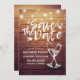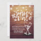 Save The Date Wedding Invitation Card Templates - Elegant Lettering Script, Vintage Champagne Glasses and String Lights on Rustic Wood Background.