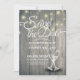 Save The Date Wedding Invitation Card Templates - Elegant Lettering Script, Vintage Champagne Glasses and String Lights on Rustic Wood Background.
