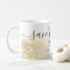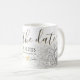 Simple, modern glitter yellow gold and silver grey Wedding Save The Date mug with cute heart. Perfect gifts for small cohort of your dearest and most special visitors. Your guest will feel the excite when you send to them this unique, adorable and memorable favours that hold some personal significance to them and keep forever lasting memory after the wedding day!