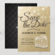 Save The Date Wedding Invitation Card Templates - Elegant Faux Gold Foil Save The Date Lettering Script and Vintage Mason Jar String Lights on Faux Gold Foil Background.