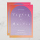 This is a stylish Wedding Save the Date Invitation. It is in trending lilac and orange gradient / ombre colours with elegant typography /script. On the front it has the message, "Save the Date", with space for your names, the wedding date, location and space for more information. There is space for your initials on the back along with he "Save the Date" message and wedding date. This stylish design is perfect to let your family and friends know about your wedding date, ahead of sending them their wedding invitation. To personalise, simply type your names, details, the location, date, and initials, into the personalise this text box. Here you can also make changes any of the rest of the text, if you want to. To change the colour or font, check out the design editing tool. If you need help with personalisation, or for a custom design contact me via zazzle chat or email: ursuladawnmoon@gmail.com