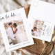 Wedding Save the Date Cards that have a photo on the front and back. The Save the Date cards contain a modern hand lettered cursive script typography that are elegant, simple and modern to use after you minimalist simple wedding day celebration.