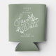 Send out these can coolers as a fun save the date alternative. Design features a hand drawn/lettered botanical graphic in white set against a sage green background (easily change the colour) Also add your names, date and location. Makes a really unique save the date or favour/gift for an engagement party, bridal shower or bachelorette party. Simple yet modern and fun - coordinates perfectly with so many of today's wedding styles.