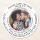 Announce the joyful news of your engagement and upcoming wedding celebration with unique custom photo save the date drink coasters. The picture, scannable QR code, and all wording on this round invitation template are simple to personalise. (IMAGE PLACEMENT TIP: An easy way to centre a photo exactly how you want is to crop it before uploading to the Zazzle website.) The black and white design features one picture of the engaged couple and modern minimalist typewriter style typography in a circle. Family and friends will love having stylish and fun announcement cards they can display in their homes. Send in mail using A2 size (5-3/4"W x 4-3/8"H.) or square 5-1/2" x 5-1/2" envelopes (sold separately). Small cardboard mailers usually used for cd's and dvd's (or similar) would also work. Congratulations to the bride and groom!