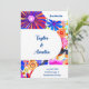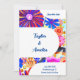 This is a retro floral, Save the Date, Wedding Card/ Invitation. It is in bright orange, pink and blue with a retro floral background and trending typography script. On the front it says, "Save the Date", with space for your names, the wedding date, location and space for more information. On the back it also says the "Save the Date", with space for your initials, and the wedding date. This bright and colourful design is perfect to let your family and friends know about your wedding date, ahead of sending them their wedding invitation. To personalise, simply type your names, details, the location, date, and initials, into the personalise this text box. Here you can also make changes to the rest of the text, if you want to. To change the colour or font, check out the design editing tool. If you need help with personalisation, or for a custom design contact me via zazzle chat.