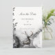 Wedding Invitation Save the Date Woodland Enchanted Forest. Text is fully customisable. Featuring a stag deer in the woods on a misty night. Part of the Enchanted collection. This collection features dark jewel autumn fall colours with purple, blue, grey, black , green and more. Moody, Rustic, Gothic Autumn Fall theme.