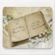 Wedding scrapbook album with an old-fashioned feather fountain pen and flowers.