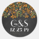 orange floral chalkboard wedding stickers with stylish bride's and groom's initials and wedding date.