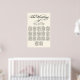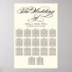 Elegant black calligraphy script wedding seating chart poster design features a monogram of the bride and groom names and wedding date and custom template text for seventeen (17) table numbers and guest names. Black and soft white / light ivory colours.