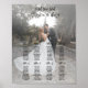 A wedding seating chart poster with photo is a beautiful and functional way to display your seating arrangements at your wedding. This type of poster features a photo of the happy couple as the centerpiece, with the seating chart arranged around it in an elegant and easy-to-read format. Guests can easily find their assigned seats and get a glimpse of the newlyweds at the same time. The poster can be customised to match your wedding theme and colours, making it a lovely addition to your décor. It can be printed on a variety of materials, such as canvas, paper or cardstock, and can be kept as a cherished keepsake after the wedding.