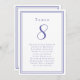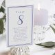 Our trendy wedding table number guest list features a template for the table number & list of guests at the table. Personalise elegant lettering and script with your guest's names & details in trendy periwinkle blue on a crisp white background. Perfect addition for a wedding, anniversary or large engagement party. The reverse side is a duplicate of the front allowing for easy viewing from both sides. Custom colour request accepted.
