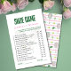 Add laughter and fun to your bridal shower or wedding celebration with this classic Wedding Shoe Game featuring a stylish tennis-inspired design. Guests guess whether the bride or groom will answer each question by raising their shoe, making it a crowd-pleasing interactive activity everyone enjoys. This game card is personalized with the couple’s names and designed in elegant green and blush tones, perfect for tennis, garden, country club, sporty chic, or preppy wedding themes. Ideal for bridal showers, engagement parties, rehearsal dinners, and wedding receptions, this game coordinates beautifully with matching bridal shower stationery and décor.