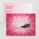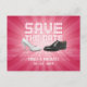 Announce your super wedding with this glamour pop "Save the Date" postcard on fuchsia pink, featuring bride and groom wedding shoes on a dance floor and led display glowing text.