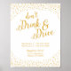 Don't Drink and Drive wedding sign with taxi contact information in gold confetti theme.