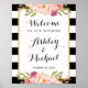 Wedding Sign | Modern Floral Black White Stripes Poster.