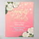 Signature Cocktail Drink Menu Wedding Decor Poster Templates - Elegant White lovely Watercolor Hydrangea Flowers and String Lights on Pink Gradient Background.