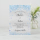 Faux silver looking background decorated with blue hearts. Personalise and add your names and wedding details. Black coloured letters.