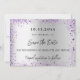 A modern and elegant Save the Date for a wedding. A faux silver looking background, decorated violet, lavender coloured faux glitter. Personalise and add a date and names. The text: Save the Date is written with a large trendy hand lettered style script.