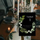 Wedding Foliage Table Number. Custom Name. Combination script and serif. Elegant and modern. Black.