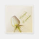 Beautiful simple single white rose flower wedding paper napkins. Edit these napkins with your bride and grooms names. Modern simple white rose bud on a rustic cream tinted background. Ideal for a rose, romantic, or country wedding. A great personalised addition to your wedding tables. Photography and design by Sarah Trett.