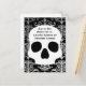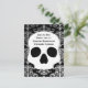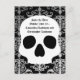 Elegant gothic style Halloween wedding save the date postcards to personalise on both sides or remove the text. In a grey damask pattern on black with a white skull.